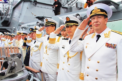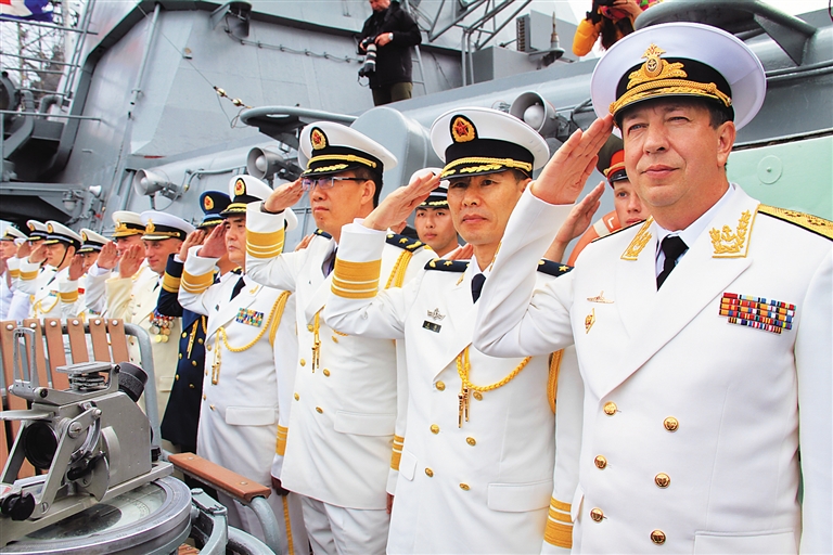 当地时间10时30分,中俄双方在位于符拉迪沃斯托克的联合导演部举行闭幕式,中方总导演、海军副司令员王海和俄方总导演、海军副司令费多坚科夫分别致辞并共同宣布演习闭幕。