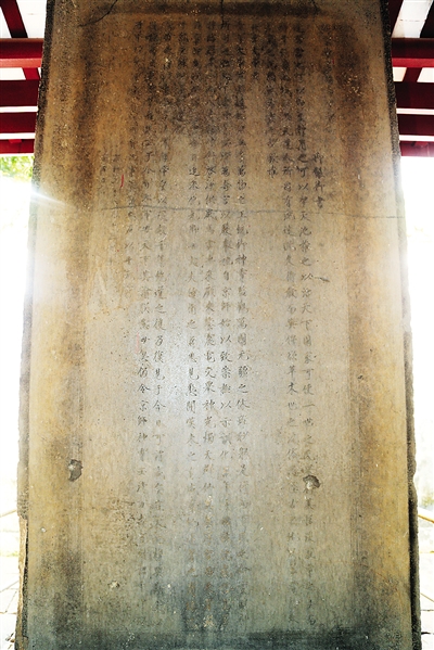拜亭内的神霄玉清万寿宫诏碑,历经数百年风雨洗礼,仍保存较好。正面光平如镜,背面保留开凿时的原貌,不加雕琢。碑文竖行,共16行、400多字,没有标点符号。右行是“神霄玉清万寿宫诏御制御书”,接着是御书正文。