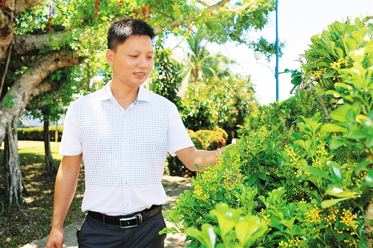 在妻子眼里,王康传关心“路边的野花”既是爱好也是工作。在海口国兴中学校园里,王康传给50多种乔本植物挂了将近200张植物认种标识牌,此后每一届学生都对这位教师印象深刻。