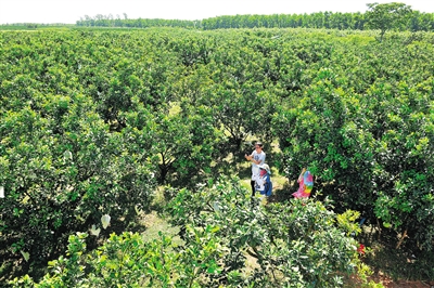 在澄迈的蜜柚基地,柚子花茶也是一个特色产品,香气浓郁的柚子花被采摘、拾捡回来,清水洗净后晾晒干,打包成为天然的柚子花茶。不少人饭后觉得肠胃饱胀油腻,可热水冲饮一杯,解除油腻感。