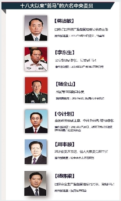 在这些名单中,中央军事委员会原副主席郭伯雄,中共中央统战部原部长令计划,全国政协原副主席苏荣,国家安全生产监督管理总局原局长、原党组书记杨栋梁,云南省委原书记白恩培,河北省委原书记周本顺被通报和调查,充分体现了中央反腐败的决心和对腐败的无禁区、零容忍。