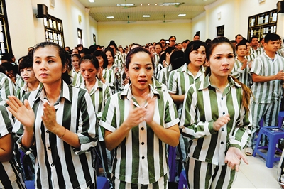 8月31日,在越南首都河内郊区的一座监狱,服刑人员参加国家主席特赦令宣布仪式。 为了纪念越南八月革命胜利和九·二国庆70周年,越南国家主席决定对全国各所监狱符合法律规定的犯人实施特赦。除了正在服刑的18298名囚犯将获得提前释放外,225名缓刑犯人及16名暂停服刑犯人也将获得特赦。特赦令于8月31日生效。 新华社/法新