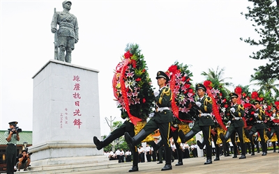 ⬅ 9月2日,海南省各界在海口市云龙镇琼崖工农红军云龙改编旧址集会,向当年参加抗战的烈士敬献花篮。图为仪式现场。