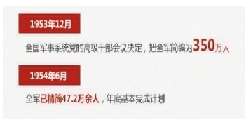 1953年8月,解放军进行第三次大裁军,全军总兵力精简23.3%,其中陆军部队精简比例最大。