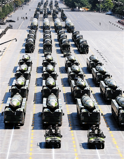 第三大亮点是第二炮兵的新一代导弹武器系统登台亮相。第二炮兵是中国军队远程精确打击的主要作战力量,其所装备的地地弹道导弹武器系统和远程巡航导弹始终是历次阅兵的“压轴重器”。这次第二炮兵公开展示的6个地面装备方队,涵盖了第二炮兵现役主要作战装备。特别是洲际弹道导弹,代表着中国战略核威慑和核反击能力的全面提升,同时也是奠定我国世界大国地位的重要基石。