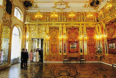 琥珀宫位于俄罗斯圣彼得堡(St。 Petersburg)附近,于1716年由德国赠送给俄罗斯的礼物,其建筑为琥珀与黄金所打造,极度奢华与高贵的形象,在18至20世纪间一度被称作世界第八大奇迹。