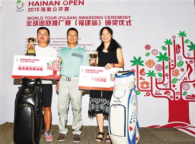 2015海南公开赛全球巡回推广赛福建站的比赛在简短的开球仪式后正式举行。经过了4个多小时的角逐,陈国海以73杆的成绩获得男子组总杆冠军,获得总杆亚军的胡裕大成绩同样为73杆,总杆季军杜德孝的成绩为75杆。男子组净杆冠军得主郭立清,成绩为67.6杆。净杆亚军是叶子雄,成绩为68.6杆。净杆季军为高昆仑,成绩69杆。女子组方面,获得总杆冠军的是李晓梅,她本场比赛打出了85杆。她同时还获得了本站比赛的最远距离奖。最近旗洞奖则被张微收入囊中;后九最多小鸟奖的得主林怀金、庄镕、陈大勇、任一平,他们在后九都摘得2只小鸟。