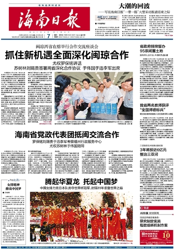 | 海南日报 头版 001 2015-09-071 2015年09月07日 星期一 |