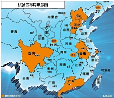 结合东部、中部、西部和东北等区域发展重点,围绕推动京津冀协同发展、加快长三角核心区域率先创新转型、深化粤港澳创新合作、促进产业承东启西转移和调整、加速军民深度融合发展、推进新型工业化进程,选择1个跨省级行政区域(京津冀)、4个省级行政区域(上海、广东、安徽、四川)和3个省级行政区域的核心区(武汉、西安、沈阳)进行系统部署,重点促进经济社会和科技等领域改革的相互衔接和协调,探索系统改革的有效机制、模式和经验。其中河北依托石家庄、保定、廊坊,广东依托珠江三角洲地区,安徽依托合(肥)芜(湖)蚌(埠)地区,四川依托成(都)德(阳)绵(阳)地区,开展先行先试。在相关地方提出改革试验方案的基础上,按照方案成熟程度,逐个报国务院审批后启动实施。