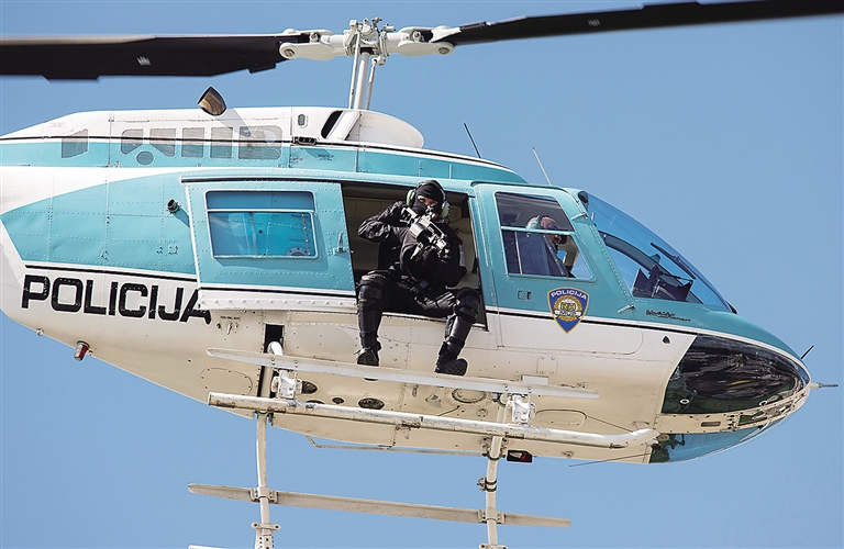 9月7日,克罗地亚特警在首都萨格勒布参加反恐演习,纪念该国特警部队成立25周年。 新华社发