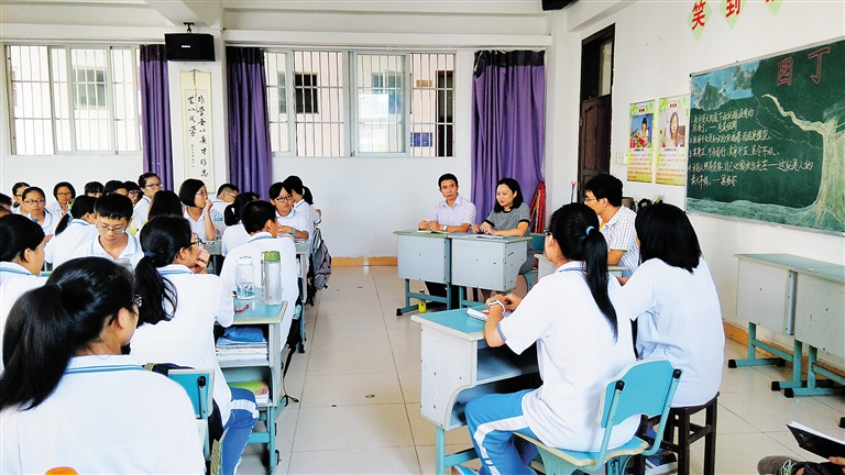 “大家好!今天这堂课我们采用创新的三方互动教学法,由学生、家长、老师一起来交流,大家畅所欲言,尽情发表不同意见。”9月7日上午9时40分,海南华侨中学高一(1)班教室内,语文教师徐永清的开场白一下让整个教室活跃起来。今天教室内除了学生、老师,还有几位提前受邀前来的家长,每个人都准备了笔记本,一副认真聚精凝神的姿态。