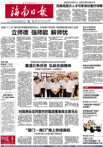 海南日报 头版 001 2015-09-081 2015年09月08日 星期二