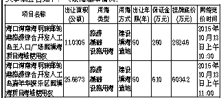 以上项目位于琼州海峡南岸海口湾西部与澄迈湾交接处、海口湾南海明珠邮轮港旅游综合开发人工岛区域内,其中主入口广场项目主要用于建设主入口广场项目及公共配套设施工程;嘉年华娱乐区项目主要用于建设嘉年华娱乐区及公共配套设施工程。项目用海符合《海南省海洋功能区划(2011-2020年)》,填海后形成的土地符合海口市城市总体规划。(详见评估报告)二、出让方式:公告期满若只产生一个意向受让方,则采取“公开挂牌,一人摘牌”方式出让;产生两个及以上意向受让方,则采取“网络竞价,价高者得”方式出让。三、公告期和联系方式:公告期2015年9月9日至2015年10月12日。详情请登录海南省公共资源交易网(http://www.ggzy.hi.gov.cn)、海南产权交易网(http://www.hncq.cn)查询。联系方式:海南省公共资源交易服务中心产权交易21号窗口,电话0898-65237542,海口市国兴大道61号华夏银行大厦18楼海南产权交易所,电话:66558003(施女士)、66558023(李女士)。