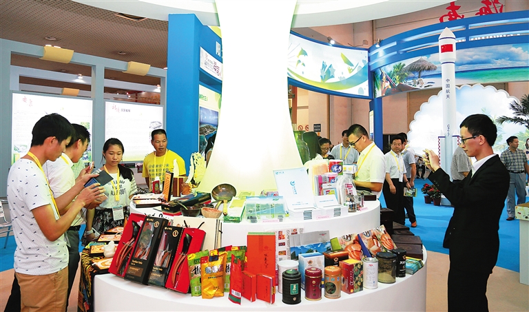 在产品展示区,我省不少旅游产品、工业制品、农产品等得到展示和推介,不少观展者对海南产品爱不释手。(见左图,本报特派记者 李英挺 摄)