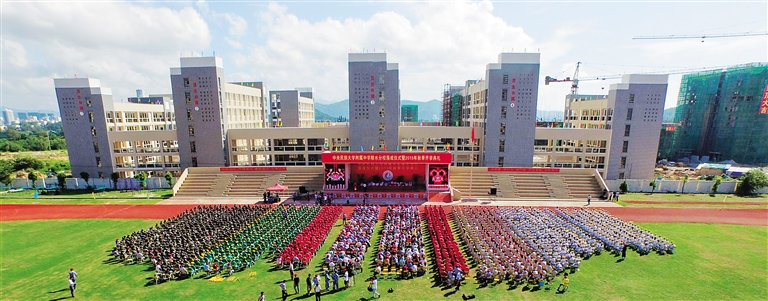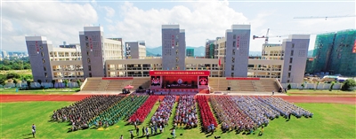 “7幢教学楼、9幢学生宿舍楼,标准的运动场,太漂亮了,太上档次了,小孩能够在这样的环境中读书,我感到很满意。”今天,被邀请来参加新学期开学典礼的学生家长符忠友高兴地说。