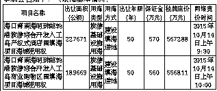 二、出让方式:公告期满若只产生一个意向受让方,则采取“公开挂牌,一人摘牌”方式出让;产生两个及以上意向受让方,则采取“网络竞价,价高者得”方式出让。三、公告期和联系方式:公告期2015年9月10日至2015年10月13日。详情请登录海南省公共资源交易网(http://www.ggzy.hi.gov.cn)、海南产权交易网(http://www.hncq.cn)查询。联系方式:海南省公共资源交易服务中心产权交易21号窗口,电话0898-65237542,海口市国兴大道61号华夏银行大厦18楼海南产权交易所,电话:66558038(黄小姐)、66558023(李女士)。