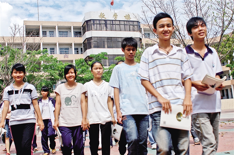 “从2006年9月至今,已经有大约800多民王下乡学生来到民族中学就读,由于王下乡学生初入县城时,学习基础、精神面貌、素质礼仪等方面较差,曾让我们颇费一番脑筋。”昌江县民族中学校长方世海说。
