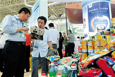 9月10日,人们在2015中阿博览会清真美食展区选购青海特色食品。 当日,第二届中阿博览会在宁夏回族自治区银川市开幕。本届展会的清真食品展也同时开启,来自国内各地和泰国、马来西亚、土耳其等国的近千种特色清真食品吸引了众多市民和采购商品尝、购买。 新华社发