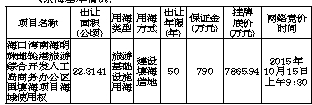 根据国家有关规定,经海南省人民政府批准,海南省海洋与渔业厅决定以挂牌方式公开出让海口湾南海明珠邮轮港旅游综合开发人工岛商务办公区围填海项目海域使用权,现将有关事项公告如下: