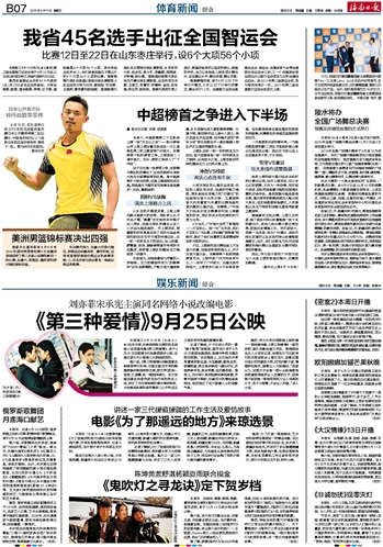 海南日报 体育新闻综合 019 2015-09-111 2015年09月11日 星期五