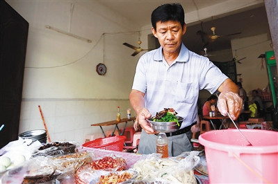 “发叔,还有粉吗?”“发叔,做粉咯。”“发叔,今天不忙吗?”几乎每一个来店里吃酸粉的顾客都会和王海发亲切地打招呼,王海发说,这么多年下来,自己也积累了很多客源,但无论新老顾客他都真诚对待。