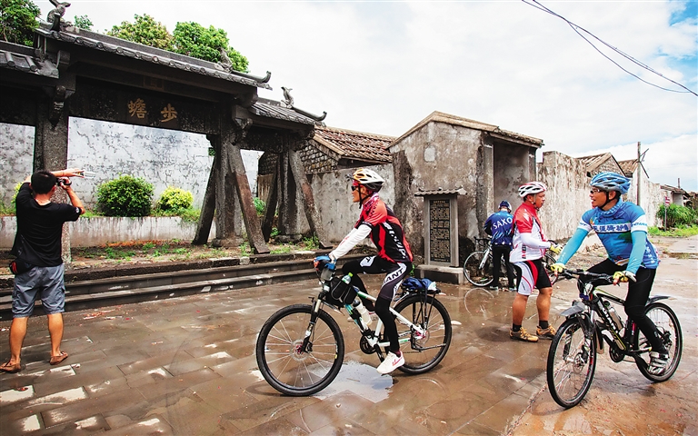 村头有树荫,水塘有鱼虾,村民来往笑盈盈。经过统筹改善基础设施的村庄,美丽整洁的村容村貌也成为了吸引游客的亮点之一。在罗美带上,美文村村口的槟榔园过去是村民的“天然牛棚”,经过1年多的规划改造,槟榔园内建起观光长廊,摆上了石凳石桌,修建起了绕村的骑行车道,吸引不少骑行游客前来游憩。