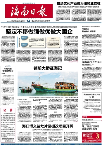 海南日报 头版 001 2015-09-141 2015年09月14日 星期一