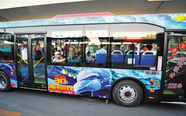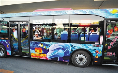 9月14日,乘客乘坐229路3D海底世界主题公交车出行。 当日,长春公交集团北达公司229路车队3D海底世界动漫主题公交车正式上线运营,该车车身与车厢内部均以蓝色“海底世界”为主题进行创作,配以生动逼真的3D立体画作,让乘客仿佛置身于穿行在城市间的“水族馆”内。 新华社记者 许畅 摄