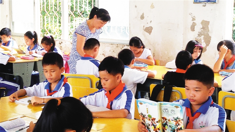 9月2日,上午第二节课,走进乐东黎族自治县保显学校五(2)班,你可以看见学生们正在热火朝天地讨论着,班主任语文老师李淑英不停地在各学习小组间穿梭,时而加入讨论,时而鼓励打气。