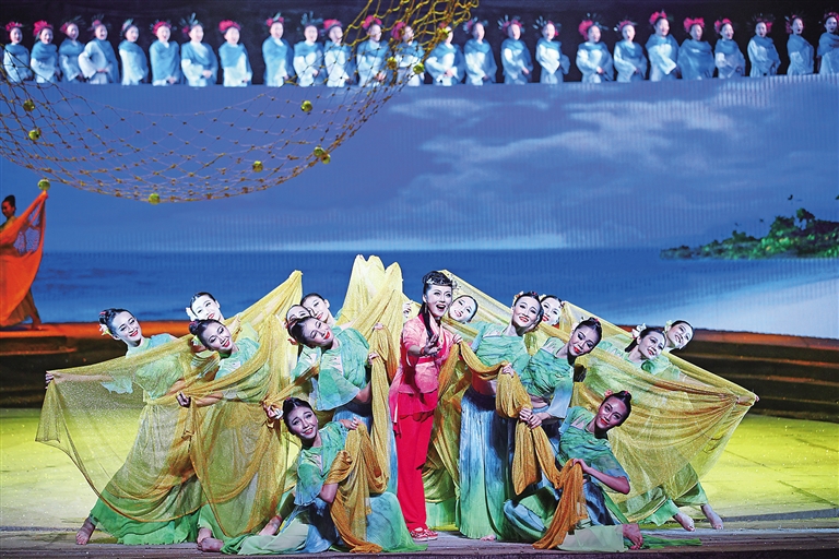 歌剧全程贯穿着海南元素,以“哩哩美”渔歌调的动人旋律,将人们带进了那个用生命守护南海的凄美故事。 本报记者 张茂 摄 (相关报道见A02版)
