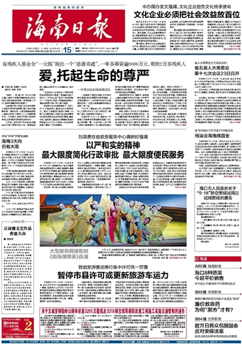 海南日报报业集团旗下媒体: 海南日报 | 南国都市报 | 南海网 | 南岛晚报 | 证券导报 | 法制时报 加入收藏 | 设为首页