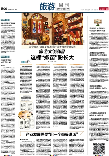 “我们公司是海南做旅游文创商品起步比较早的几家公司之一,感觉政府对旅游文创商品产业这块的重视程度还不够高,走了4年虽然能活下去,但走得比较艰难,全是靠自己原有的渠道厚积薄发,没有取得什么大的进展。”海南美道南天文化创意产业有限公司(南海部落)的客户总监牛晓明认为,无论采取哪一种模式,都需要政府和企业携手合作,尽量探索出一条适应海南本地市场的道路,而海南的旅游文创商品产业也可以由此获益,得到推动。