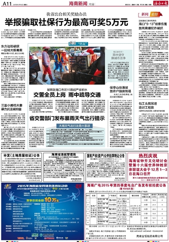 海南日报 海南新闻社会 011 2015-09-161 2015年09月16日 星期三
