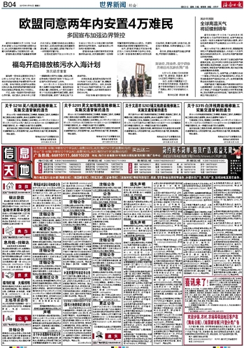 海南日报 世界新闻社会 016 2015-09-161 2015年09月16日 星期三
