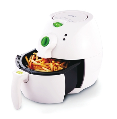 在向销售人员询问之后,记者了解到它与电烤炉的最大区别在于后者无法将食物做出煎炸的效果。如果本身是含有油的食材,如肉类,海鲜类,冷冻薯条等,不需要加油也能做出美味口感。如果食材本身不含油,如蔬菜和新鲜薯条,加一勺油就可以做出和传统浸在油中一样的美味口感。