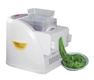 销售人员告诉记者,该款机器仅需加入面粉,然后按下启动键,再加水或蔬果汁3个简单的步骤就可以等着面条大功告成了:3分钟开始出面,18分钟全自动成面。