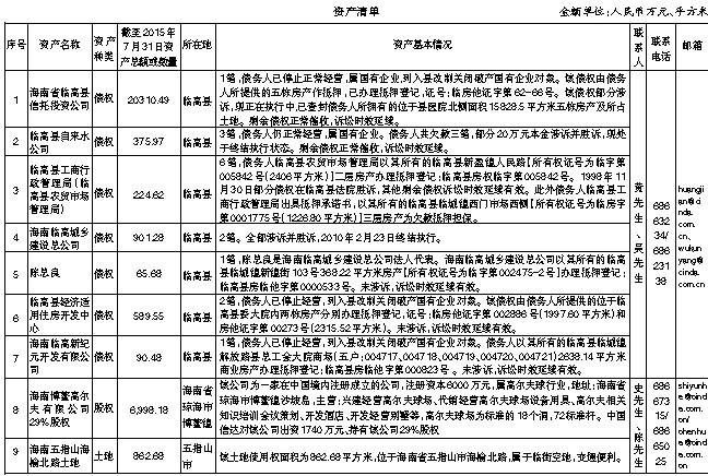 中国信达资产管理股份有限公司海南省分公司资产处置公告