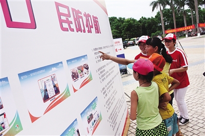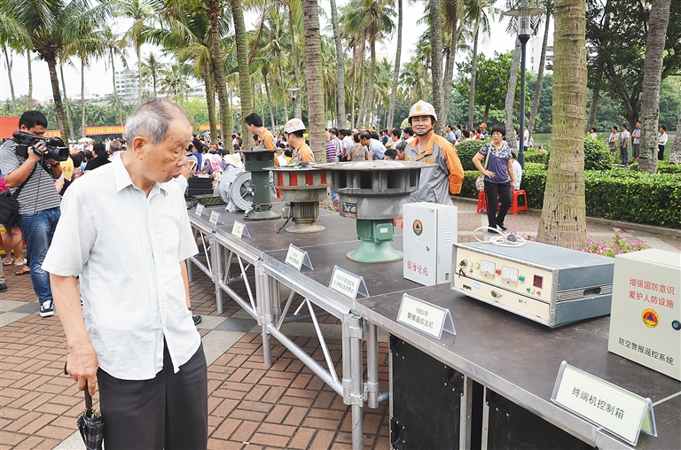 海口将人防设备带进公园进行展示,让更多市民了解人防设备,爱护人防设备。