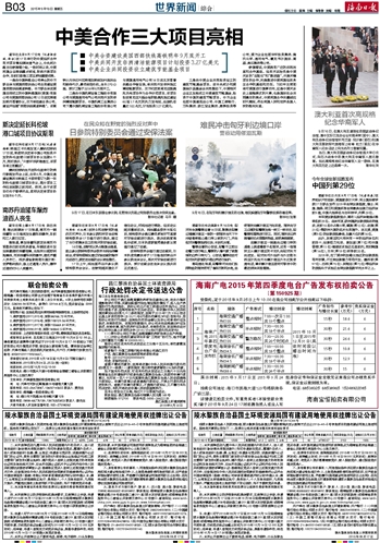 海南日报 世界新闻综合 015 2015-09-181 2015年09月18日 星期五