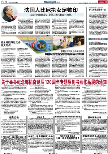 海南日报 体育新闻综合 021 2015-09-181 2015年09月18日 星期五