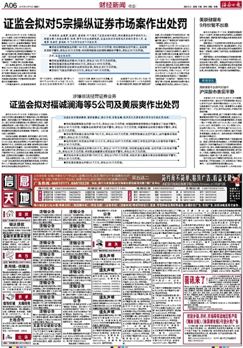证监会拟对5宗操纵证券市场案作出处罚