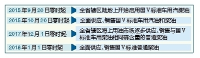 根据省政府9月18日下发的《关于推广使用国V标准车用汽柴油的通告》,国Ⅴ标准车用汽油和柴油是指符合国家标准《车用汽油》(GB17930-2013)和《车用柴油》(GB19147-2013)中满足第五阶段排放要求的车用汽油和柴油,普通柴油按国家标准《普通柴油》(GB252-2015)的要求执行。