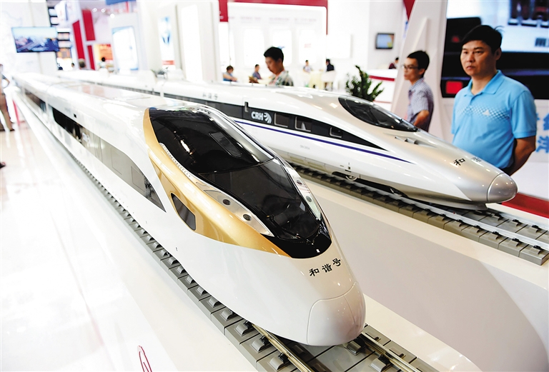 9月19日,观众参观和谐号动车模型。 正在广西南宁举办的第12届中国—东盟博览会上,中国高铁展首次在该博览会亮相,“快速发展的中国高速铁路”展台向东盟国家集中展示了中国铁路创新发展历程和中国高铁现代化技术装备。 新华社记者 刘广铭 摄