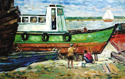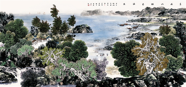 而在马来西亚琼籍书画艺术家展出作品中,除了他们熟悉的吉隆坡街景、老建筑,以及与海南多有相似的椰风海韵之外,还有他们想象中的、印象中的海南。