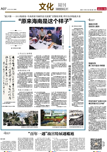 椰林、大海、槟榔、热情奔放的黎族姑娘,还有郁郁葱葱的吊罗山区、停留在人们记忆中的火山村落……马来西亚琼侨日夜牵挂的家乡,被海南书画艺术家的生花妙笔带到了吉隆坡。