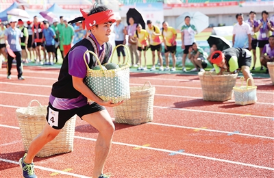 今年运动会亮点和玩法颇多,趣味运动项目有动感五环、背“媳妇”、同舟共济、提水、抗旱、巧夹槟榔、男女挑担障碍赛、抢种抢收、五绳拔河、心想事“橙”、趣味椰子、顶棍、赶“猪”赛跑等12项,别开生面的趣味运动会让大家在运动中收获了快乐。为了突出参与性,减少竞技味,本届运动会组委会取消了金银铜牌的排名,取而代之以一等奖一名、二等奖两名的奖励方式。