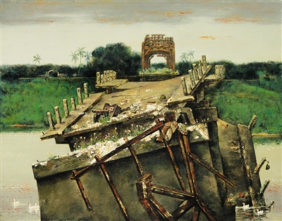 而天津美术学院院长邓国源画笔下的海口追求现代感,画的不是他眼中所见的景物,而是画家内心的感觉,呈现出重组结构和线条穿插的秩序美。