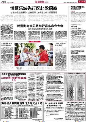 海南日报 海南新闻综合 003 2015-09-211 2015年09月21日 星期一
