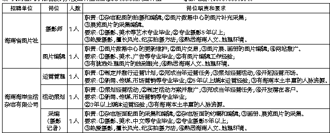 请有意向者登陆南海网(www.hinews.cn)人才专栏,下载填写《两社人才报名表》,并发邮件至hnstps@163.com(邮件主题及文件名格式为:姓名+毕业院校+应聘岗位),报名时请明确应聘岗位,每位应聘者限报一个岗位。报名截止时间为2015年10月8日。