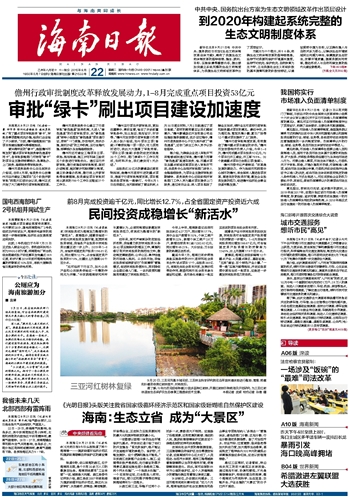海南日报 头版 001 2015-09-221 2015年09月22日 星期二
